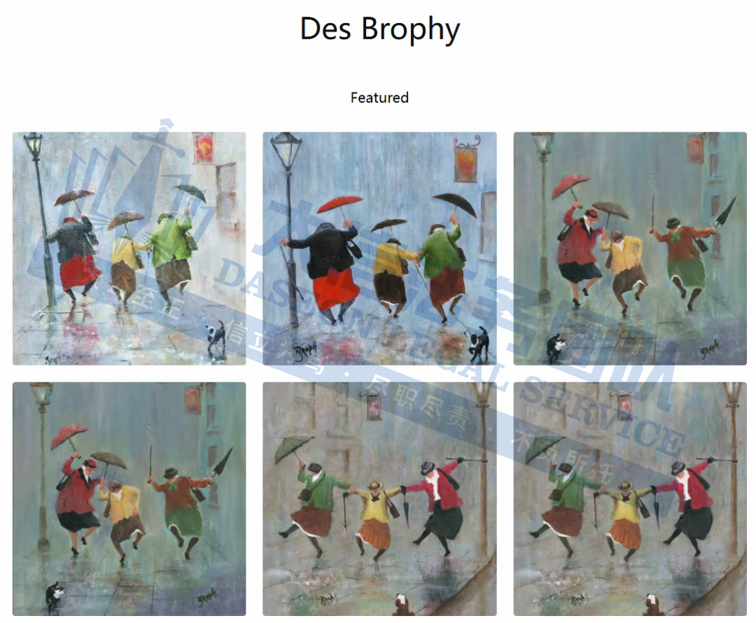 原告是一名来自英国的艺术家,以Des Brophy为笔名创作,他的艺术风格极具特色,擅长捕捉人们在无防备时刻的社会百态,用幽默的视角呈现在画布上,,展现了他们之间的友谊和欢乐,传递出积极向上的生活态度。这种独特的艺术视角和表现手法,使其作品别具一格,赢得了广泛的关注。