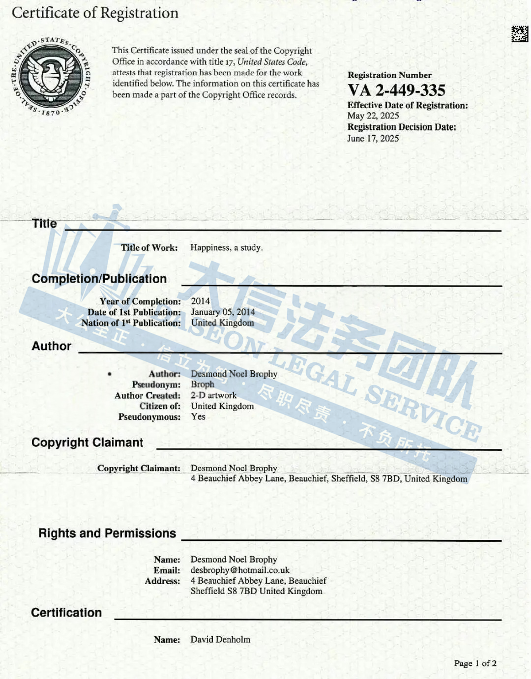 原告:Desmond Noel Brophy