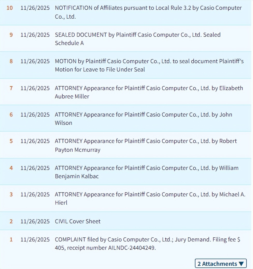 原告:Casio Computer Co., Ltd.
