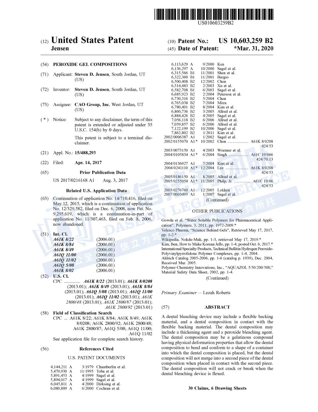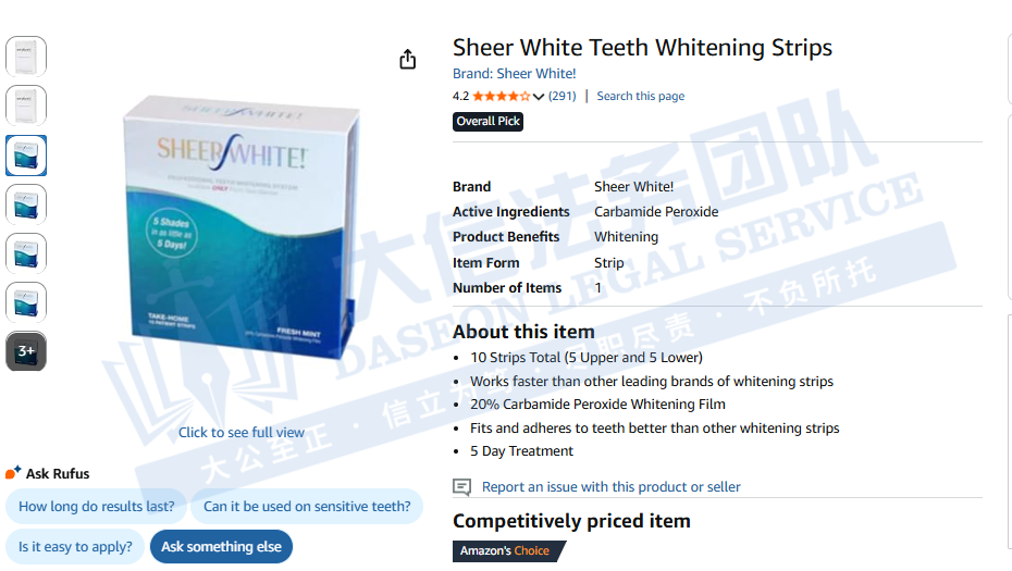 原告CAO Group, Inc. 是美国犹他州盐湖城的技术驱动型创新企业,专注于医疗、牙科设备及消费电子产品的研发、制造与销售。公司以自主研发为核心,拥有包括Sheer White!牙齿美白贴等在内的160多项全球专利,持续推动牙科及医疗领域的技术进步与产品革新。