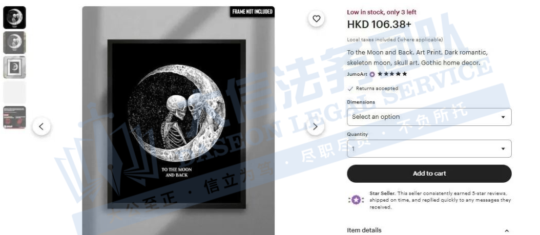 此案为版权维权,共涉及4张版权画作。侵权风险极高!以下是维权具体信息,未经授权不得擅自使用,跨境卖家尽快检索下架,否则会有TRO侵权风险!
