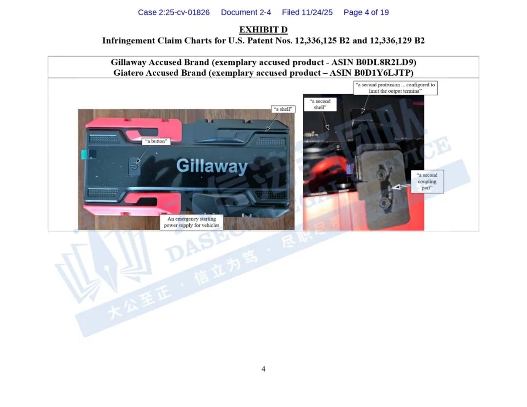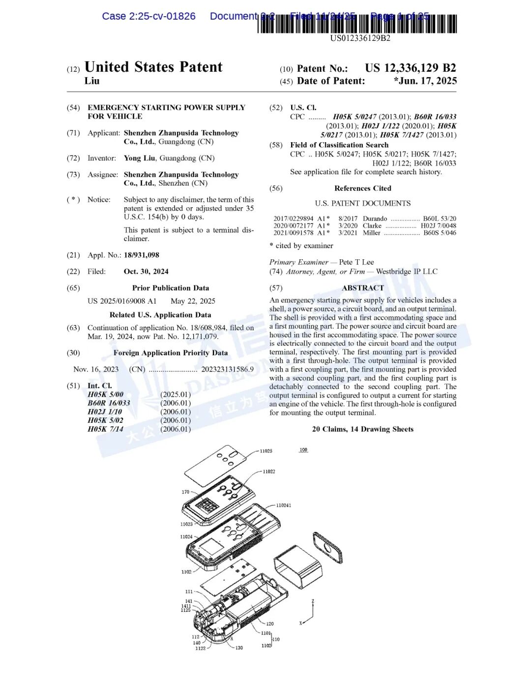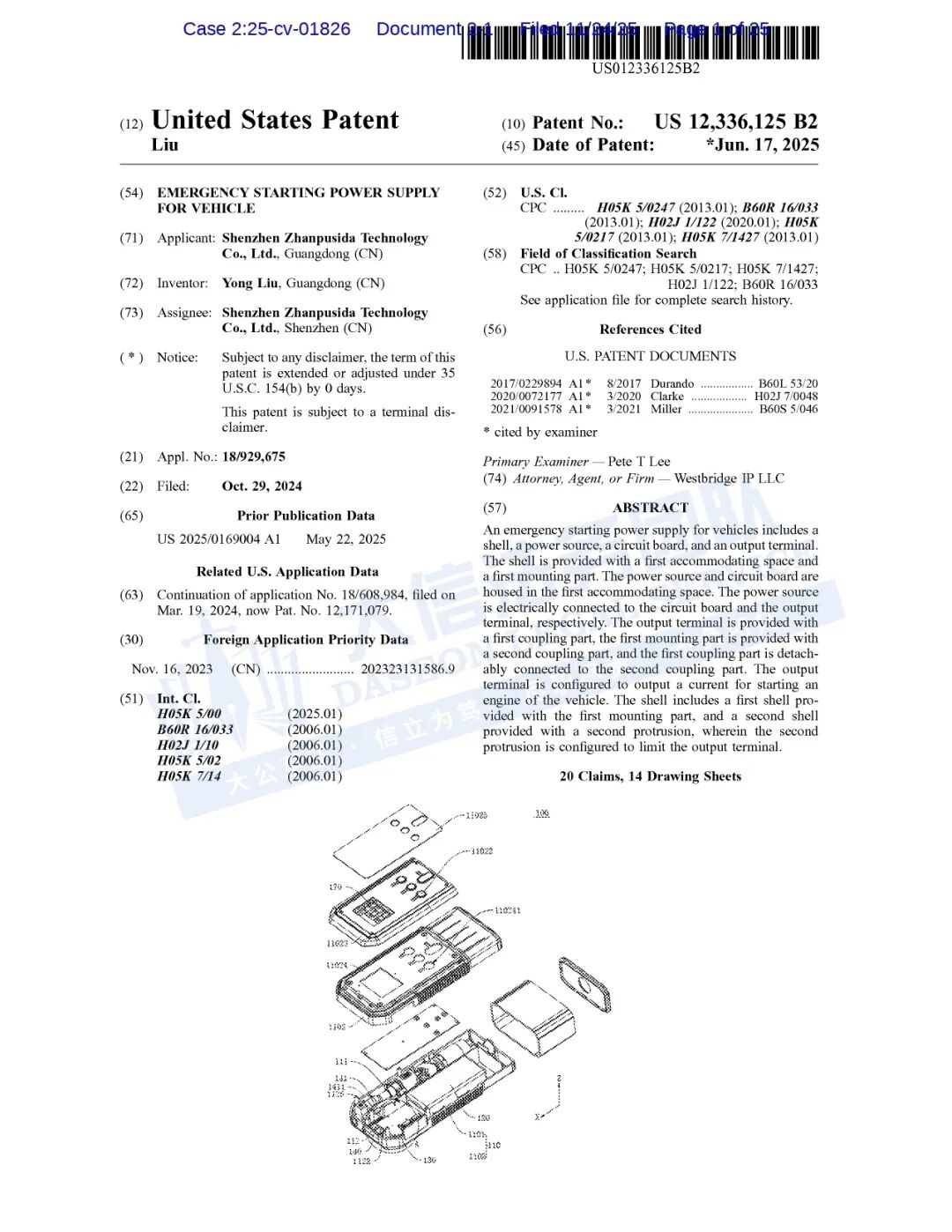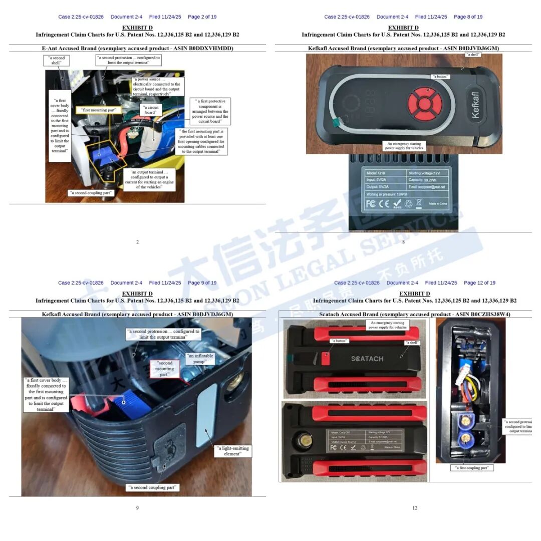 原告是一名来自中国深圳的企业。专注车辆应急电源创新,针对传统产品内部结构不稳、寿命短等痛点,突破技术难关,研发出多功能便携式移动电源。该产品集成汽车启动、充气泵及户外照明功能,通过优化内部空间布局,将电源与电路板稳固置于壳体第一容纳空间,输出端牢固定位于第二空间,显著提升结构可靠性与使用寿命,成为户外出行必备装备。
