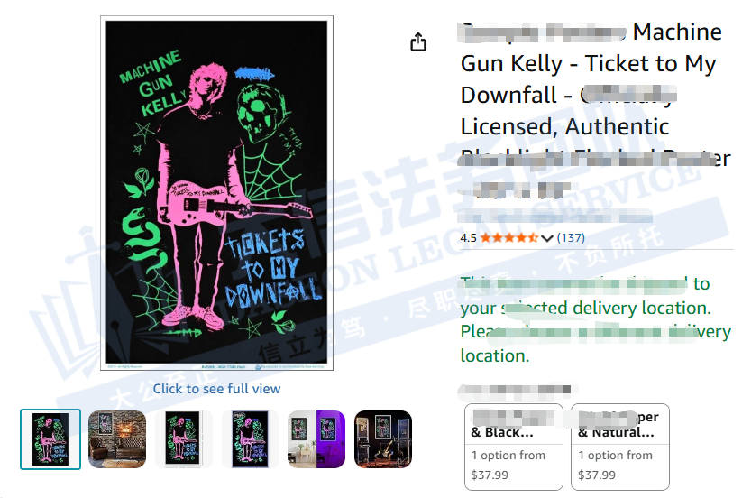 此案为商标维权,关键词:MACHINE GUN KELLY、MGK、LOST AMERICANA。侵权风险极高!以下是相关维权具体信息,未经授权不得擅自使用,跨境卖家尽快检索下架,否则会有TRO侵权风险!