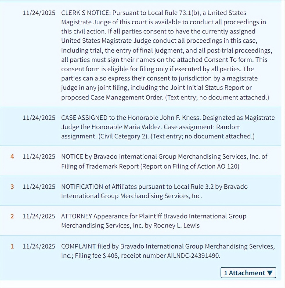 原告作为环球音乐集团旗下权威的音乐周边与品牌管理公司,现正式为合作艺人MACHINE GUN KELLY(简称MGK)启动知识产权保护专项。MGK凭借其标志性的高速说唱技巧与多维度艺术才华,在全球嘻哈领域树立了“枪哥”“枪爷”的强烈个人标识。其音乐作品与跨界演出持续引爆流量,成为当代嘻哈文化中商业价值与艺术质感兼备的现象级代表。Bravado将全面维护其衍生商品、视觉设计及关联产品的权益体系,确保品牌价值与艺术创作的完整性。