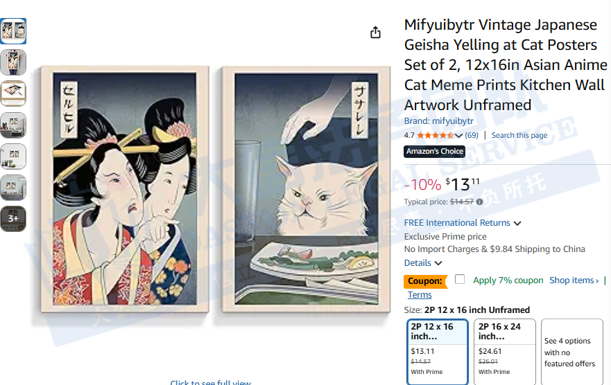 此案版权维权,共涉及3张画作,以下是维权具体信息,未经授权不得擅自使用,跨境卖家尽快检索下架,否则会有TRO侵权风险!