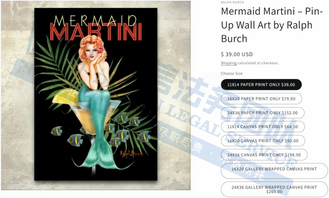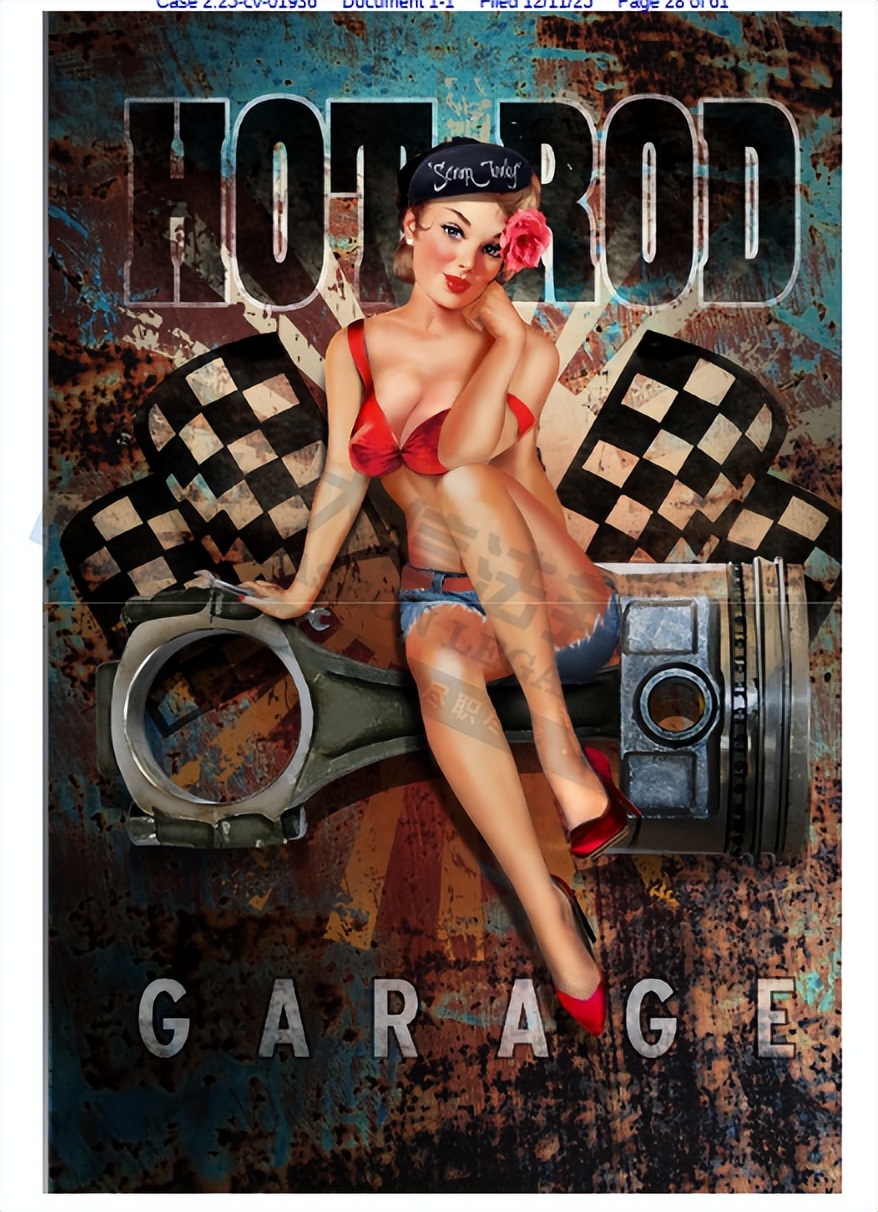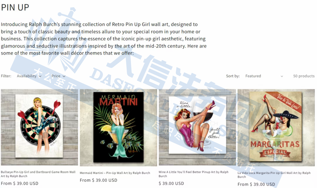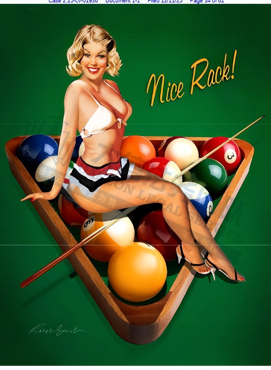 原告是美国本土影响力的复古风情画家,其作品中迷人的海报女郎栩栩如生,马提尼、鸡尾酒、摩托车、改装车、赌博以及众多引人入胜的场景跃然纸上,完美诠释了经典海报女郎美学的永恒魅力。凭借丰富广告经验,以及对复古插画风格的海报女郎艺术的浓厚兴趣,成为了该领域作品发表最多、收藏最广泛的艺术家之一。