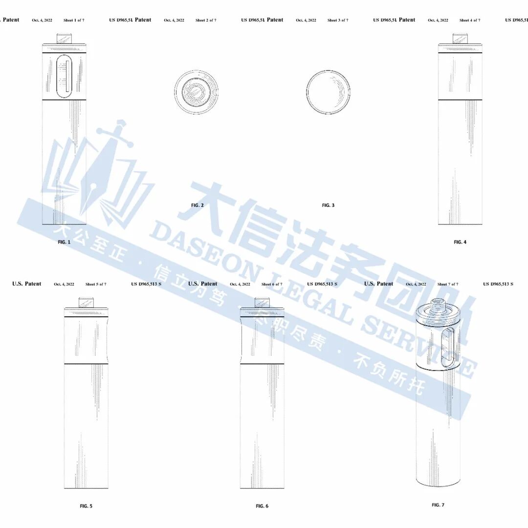 此案为专利维权,涉及专利号D965512和D965513,两项外观专利,均于2021年4月1日提交,并于2022年10月4日下证,以下是涉及专利的具体信息,侵权风险极高,跨境卖家尽快检索下架,避免TRO侵权风险!