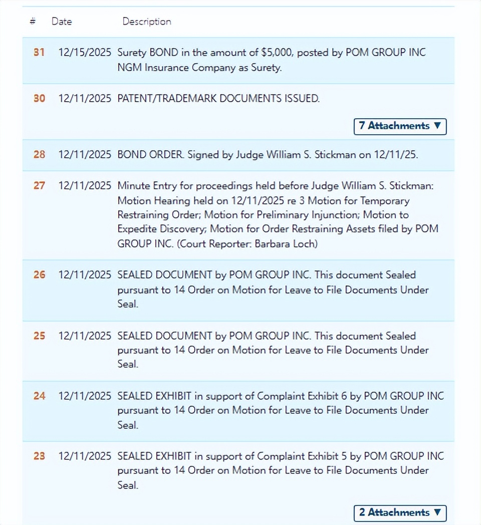 原告:POM Group Inc.