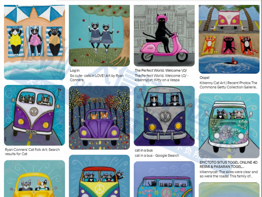 原告是来自美国的一位独立插画艺术家,她笔下的猫咪常常带着夸张表情和拟人化的动作,色彩鲜明又充满故事感,让人一眼就能记住,常常赋予猫咪拟人化的行为和性格,画面充满趣味和生命力。Conners本人也非常爱猫,饲养了六只猫咪,这些猫咪也成为她重要的创作灵感来源。