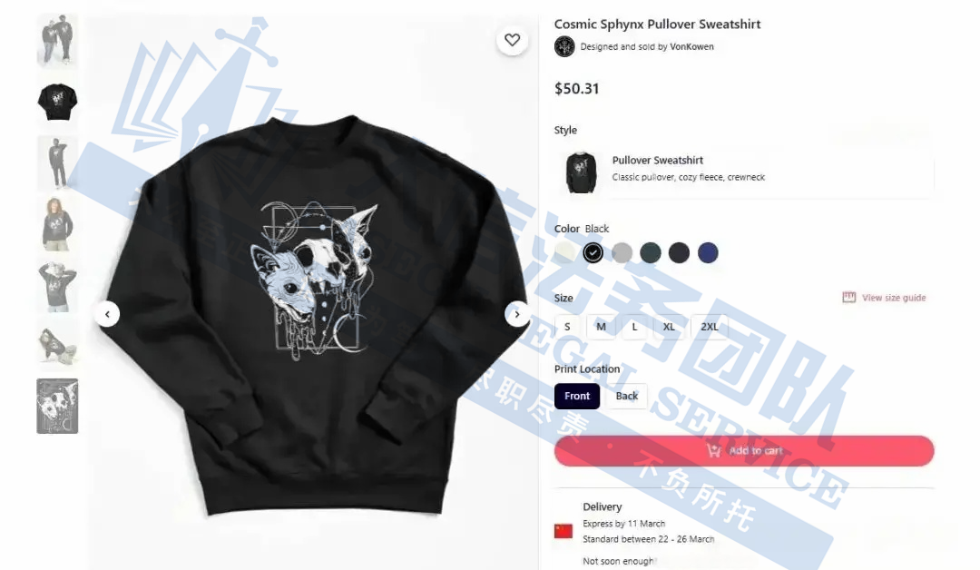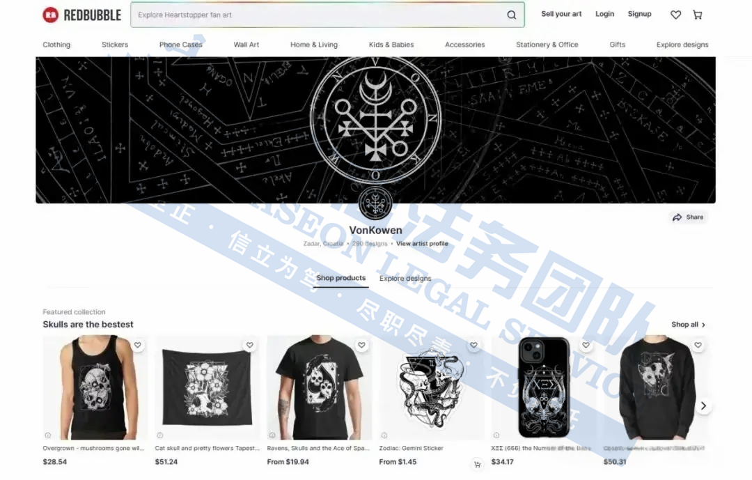 原告是拥有克罗地亚插画师Sanda Krstulović创作的“Von Kowen”系列暗黑风格插画的版权,该系列作品以暗黑、恐怖风格著称,同时融合了诙谐幽默的元素。作品多为黑白色调的矢量图,灵感来源于恐怖电影、神秘学以及艺术家的个人梦境,图案印在 T 恤、手机壳、帆布袋后快速在社交媒体传播,吸引大量年轻粉丝。
