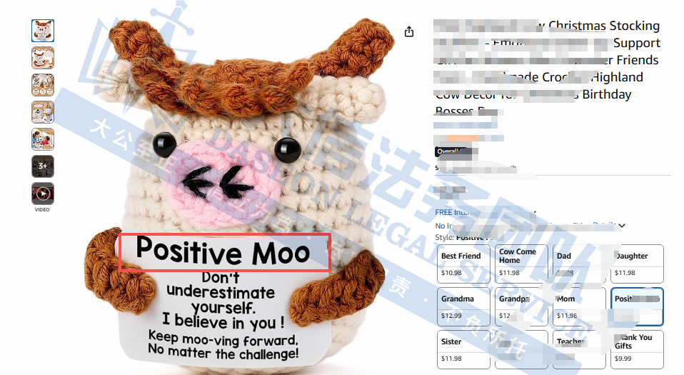 原告是来自深圳的国人卖家,专注于充满正能量的毛绒填充玩具及相关产品的设计、旗下有一款Positive Moo主要用于钩织的玩偶娃娃,用柔软的高品质纱线一针一线钩织而成,不仅外形憨萌可掬,更是一份安慰与陪伴,鼓励人们用乐观的态度拥抱生活。