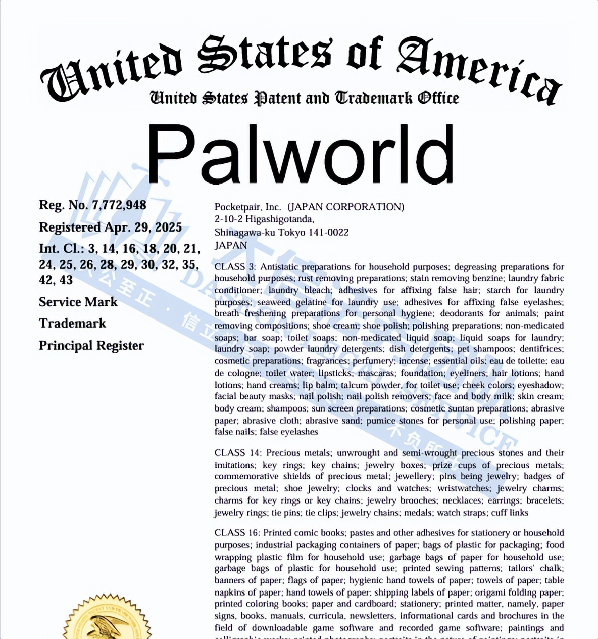 原告是日本一家于2015年成立的独立游戏开发公司,旗下有一款Palworld幻兽帕鲁游戏,于2024年1月上线,游戏融合了生存、建造、战斗、宠物捕捉与养成等多元玩法,玩家可在广阔的开放世界中捕捉超百种形态各异的帕鲁,利用它们的能力进行战斗、建造、工业生产甚至自动化作业。凭借“开放世界+生存建造+宠物捕捉”的多元玩法,迅速风靡全球,首周销量突破800万份,成为2024年开年现象级爆款。