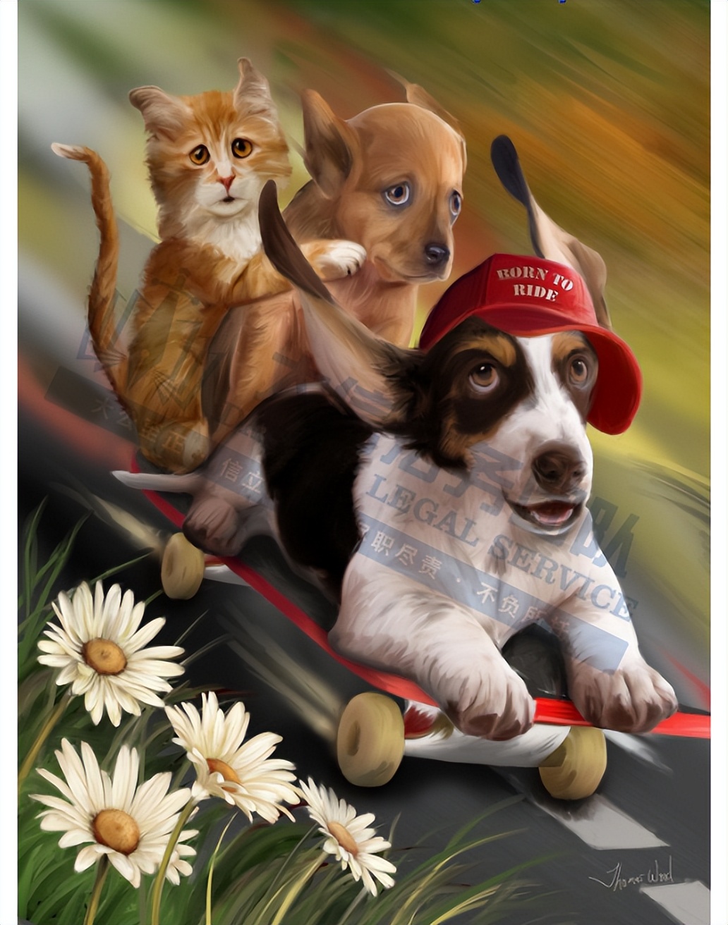 原告是美国当代艺术家,他的作品以其异想天开的最佳伙伴宠物形象、美国乡村风景画和葡萄酒画作而闻名,常见题材包括人物、风景及表现情绪的抽象元素,运用柔和色调与丰富层次,使作品既具有视觉表现力,又带有内在的情感深度,常被收藏家和艺术爱好者用于装饰画、画框复制品等形式。