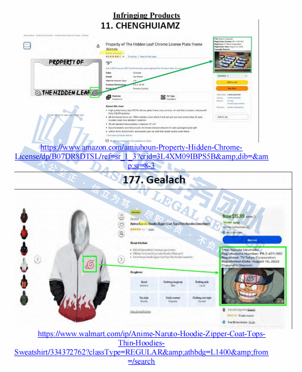 此案为商标+版权维权,目前已有484家店铺被冻,涉及一个商标,商标词:NARUTO,以及视频中的符号,以下是涉及商标的具体信息,未经授权不得擅自使用,侵权风险极高,跨境卖家尽快检索下架,避免TRO侵权风险!