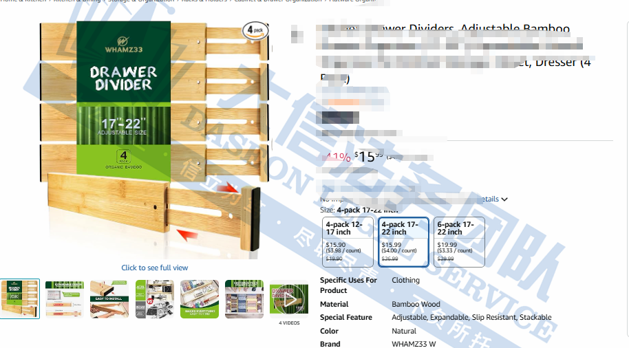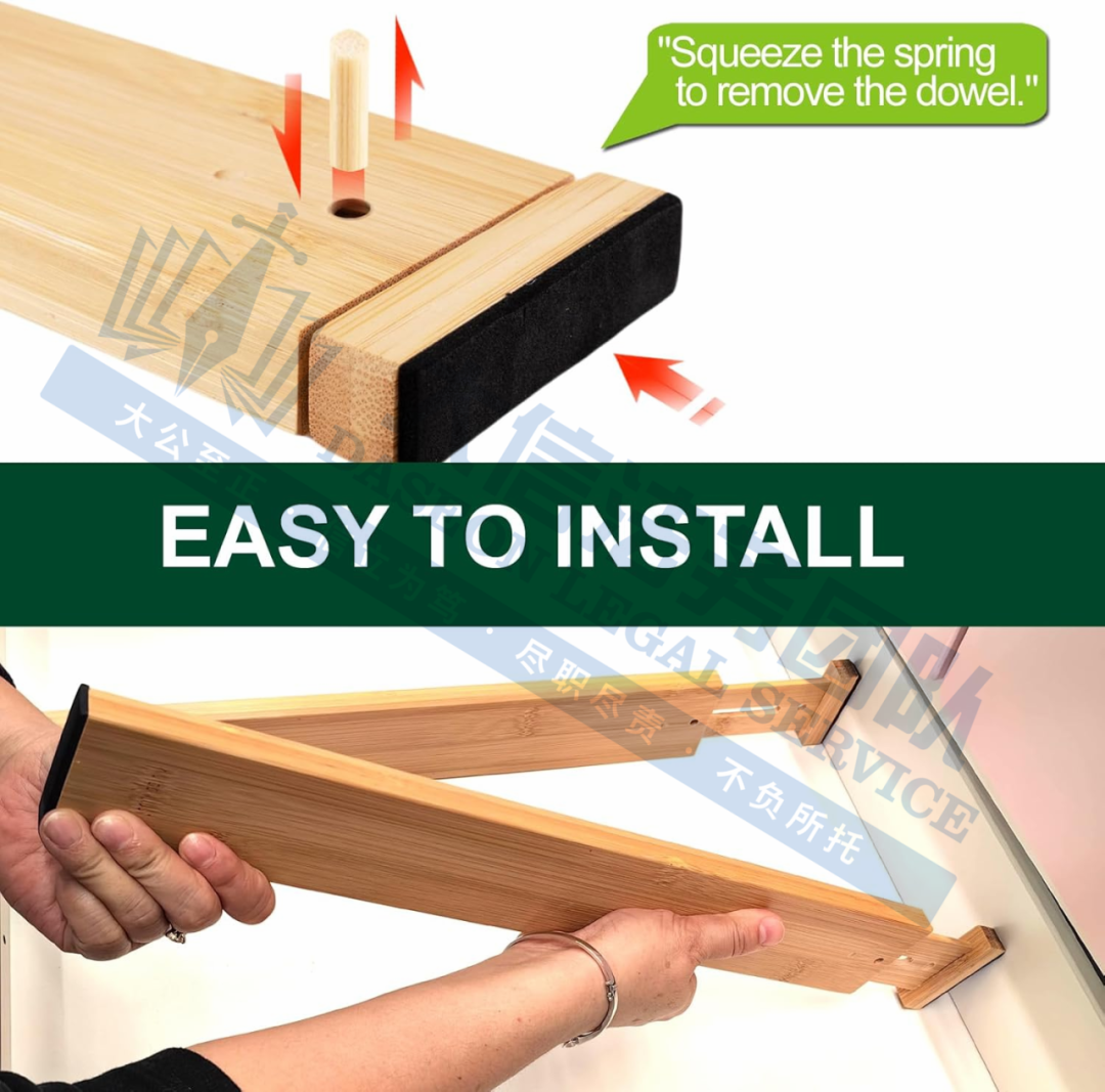 原告是中国广东的公司,专注于抽屉隔板的生产和销售;本次维权的产品是一款可调节抽屉隔板,该隔板配备内置弹簧,可确保将其固定在所需位置。用户只需调整隔板的长度以适应大多数抽屉,使其能够在使用过程中保持稳定,还可以保护抽屉免受划痕或任何其他损坏。