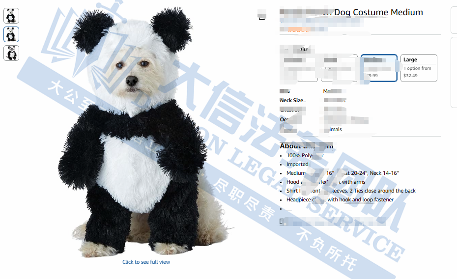 原告是来自美国一家创意宠物服装公司,注于为宠物设计独特服饰,可将宠物装扮成泰迪熊、兔子、独角兽等可爱的“行走萌物”。其产品配备可调节抽绳,适配小型至中型犬及猫等宠物,兼顾舒适性与趣味性,且设计贴合宠物身形,能有效提升宠物的接受度。