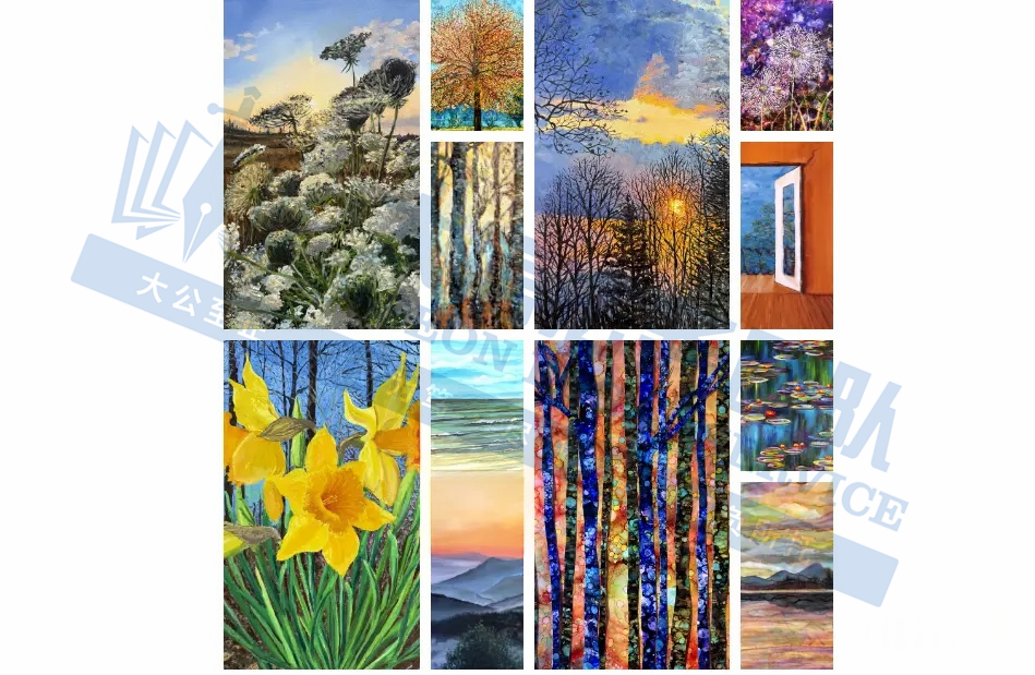 原告是来自美国的多彩多艺艺术家,其作品多以自然为主题,充满生机与灵动,擅长运用丰富多样的媒介和材料进行创作,涵盖蜡画、油画、酒精墨水、水彩、丙烯,以及瓷器、陶土、陶瓷和玻璃等,常融合自然形态与现代感图案,适合用于装饰画、空间艺术和家居场景表现。