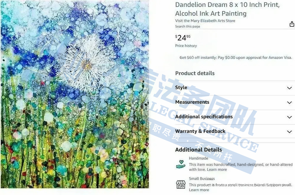 原告是美国当代视觉艺术家,她的作品以柔和色彩和现代抽象风格著称,她以现代风格的水彩画著称,作品色彩明快且笔触随性,题材广泛涵盖城市风光、自然景观(如玛瑙切片)以及热门的儿童房装饰画(如工程车辆和动物)常在画布艺术、装饰画和印刷画市场上出现。
