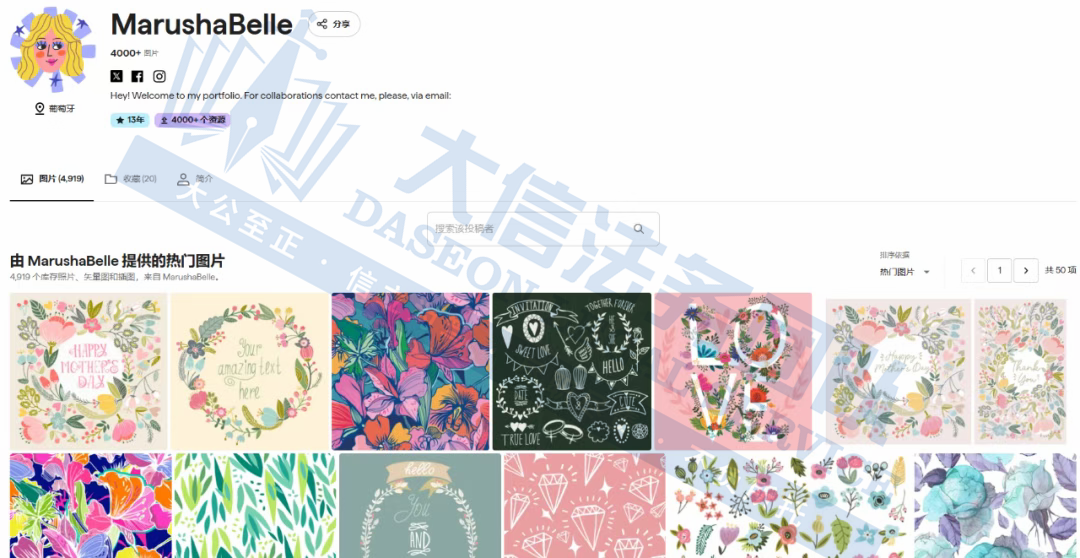 原告是来自俄罗斯的平面艺术家,擅长将自然元素转化为几何抽象纹理,融合手绘质感与数字艺术,形成独特的Ink and Paint趋势风格,其插画风格被评价为能瞬间吸引儿童注意力,同时激发想象力的作品,具有较为广泛的商业影响力。