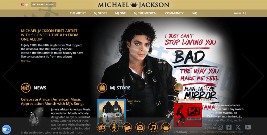 原告是一家加利福尼亚州的公司,拥有迈克尔·杰克逊相关的知识产权权益,迈克尔·杰克逊是一位备受尊敬的音乐家和表演者,被誉为“有史以来最伟大的艺人”。他的音乐和表演风格对全球音乐界产生了深远的影响,他的影响力至今仍在继续。他的声乐风格和复杂的舞蹈动作,比如月球漫步,这些都成为了他对音乐影响的标志性标志。音乐风格涵盖了多种流派,包括流行、摇滚、灵魂和R&B等,深受全球听众的喜爱。