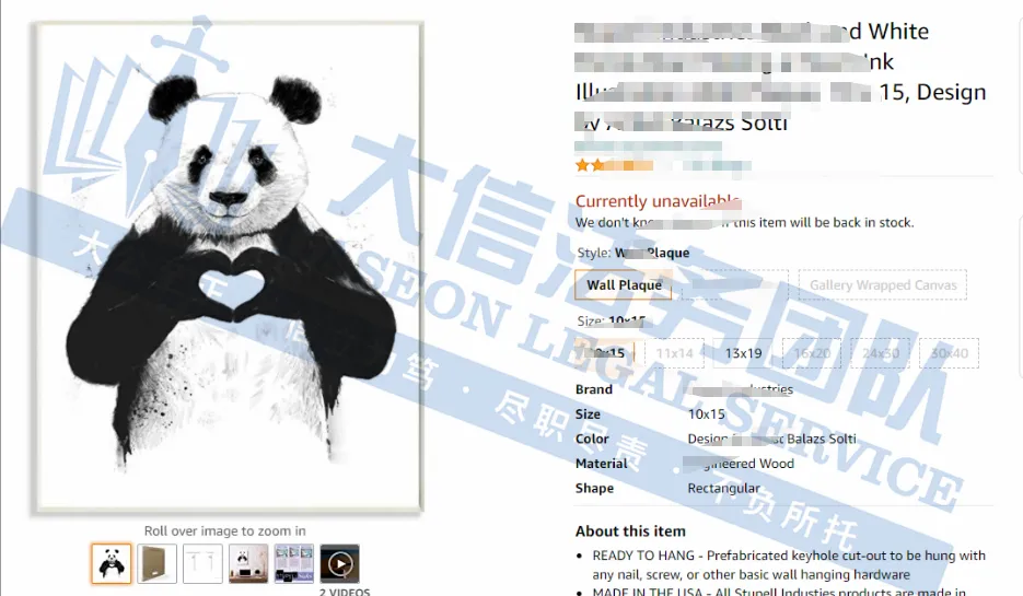 此案为版权维权,目前已有190家店铺被冻,涉及7张版权作品,除此之外,官网上的图片均不可擅自使用,以下是涉及版权的具体信息,未经授权不得擅自使用,侵权风险极高,跨境卖家尽快检索下架,避免TRO侵权风险!