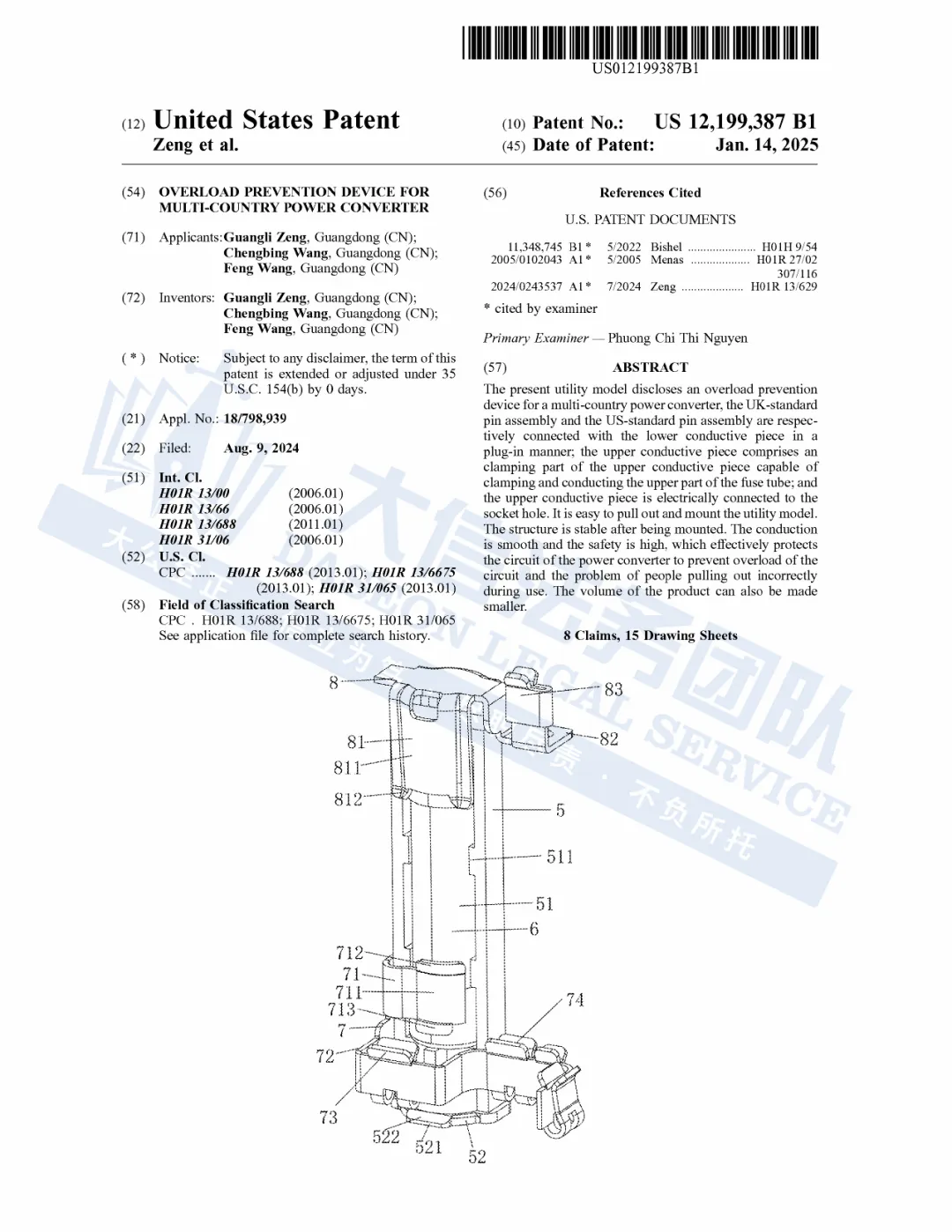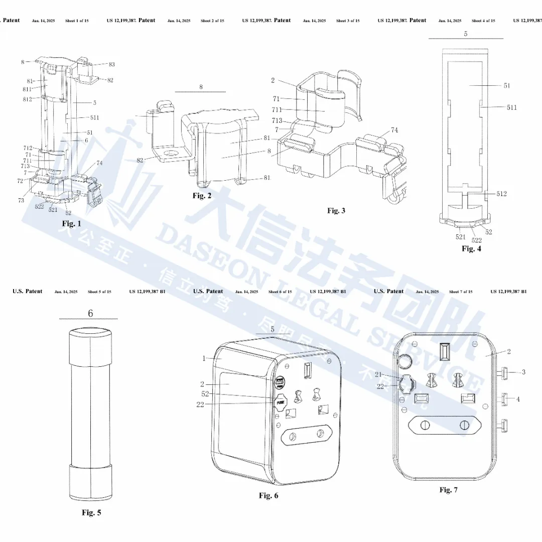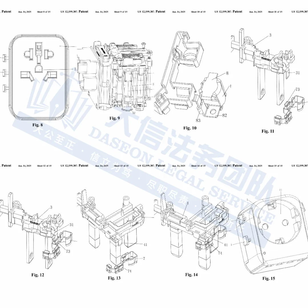 此案为专利维权,涉及一项发明专利,专利号:12199387,于2025年1月14日下证,该专利保护的是内部核心结构,注意,只要涉及理念相似,就有可能被TRO的风险,以下是涉及专利的具体信息,未经授权不得擅自使用,侵权风险极高,跨境卖家尽快检索下架,避免TRO侵权风险!