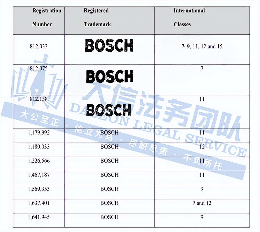 此案为商标维权,涉及以“BOSCH”文字商标为主,此案涉及1个商标,商标号:3761323,注意,原告注册了超多商标,以下是涉及商标的具体信息,除此之外,官网上的其他作品未经授权不得擅自使用,侵权风险极高,跨境卖家尽快检索下架,避免TRO侵权风险!