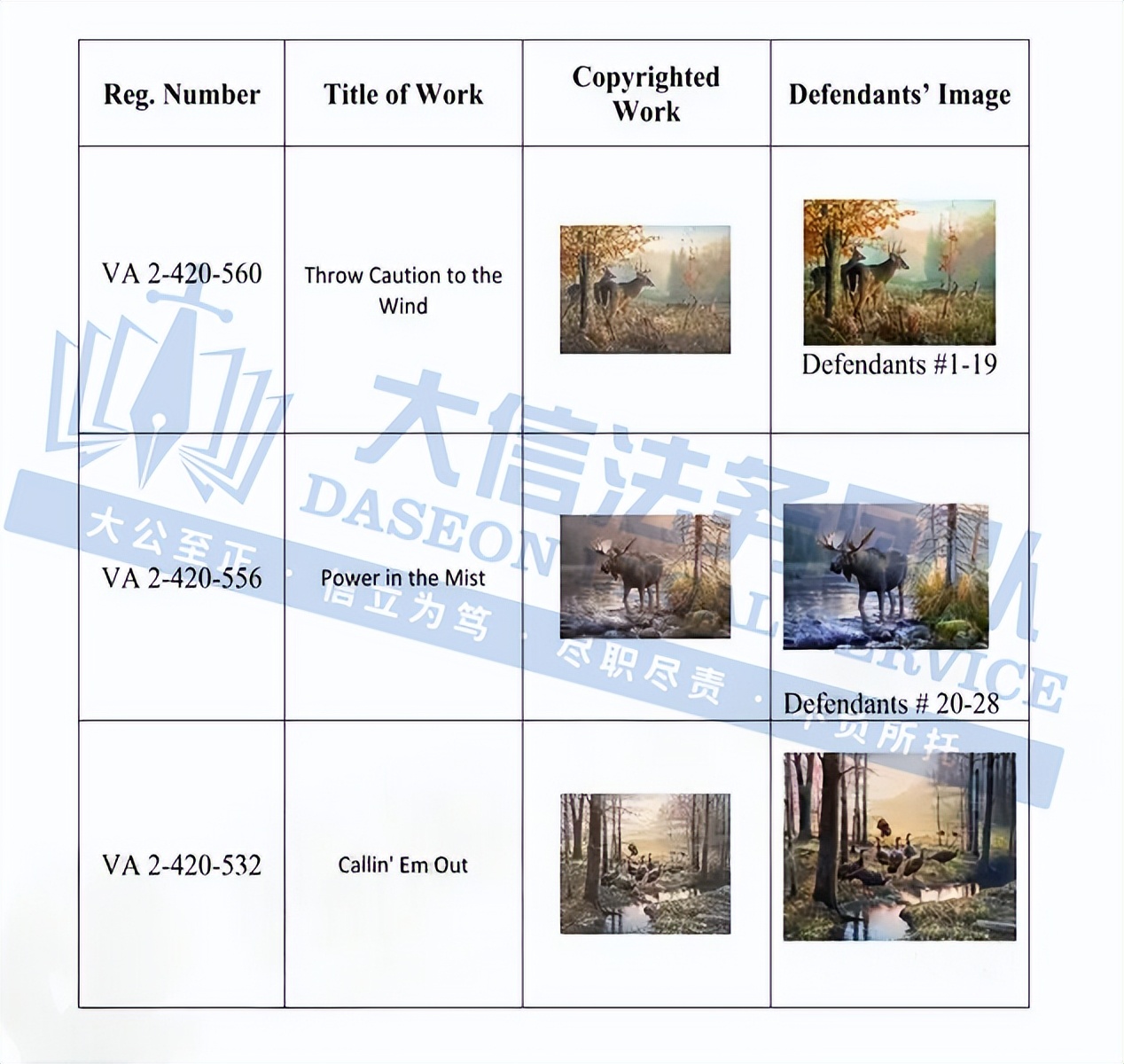 此案为版权维权,涉及3张版权图,版权号为:VA 2-420-560、VA 2-420-556、VA 2-420-532,于2024年9月18日下证,跨境卖家一定要注意检索下架,未经授权不得擅自使用,以下是涉案版权信息,可供卖家参考,避免TRO侵权损失!