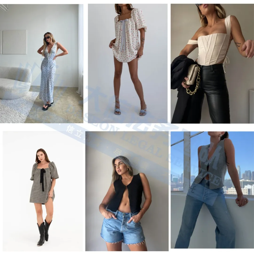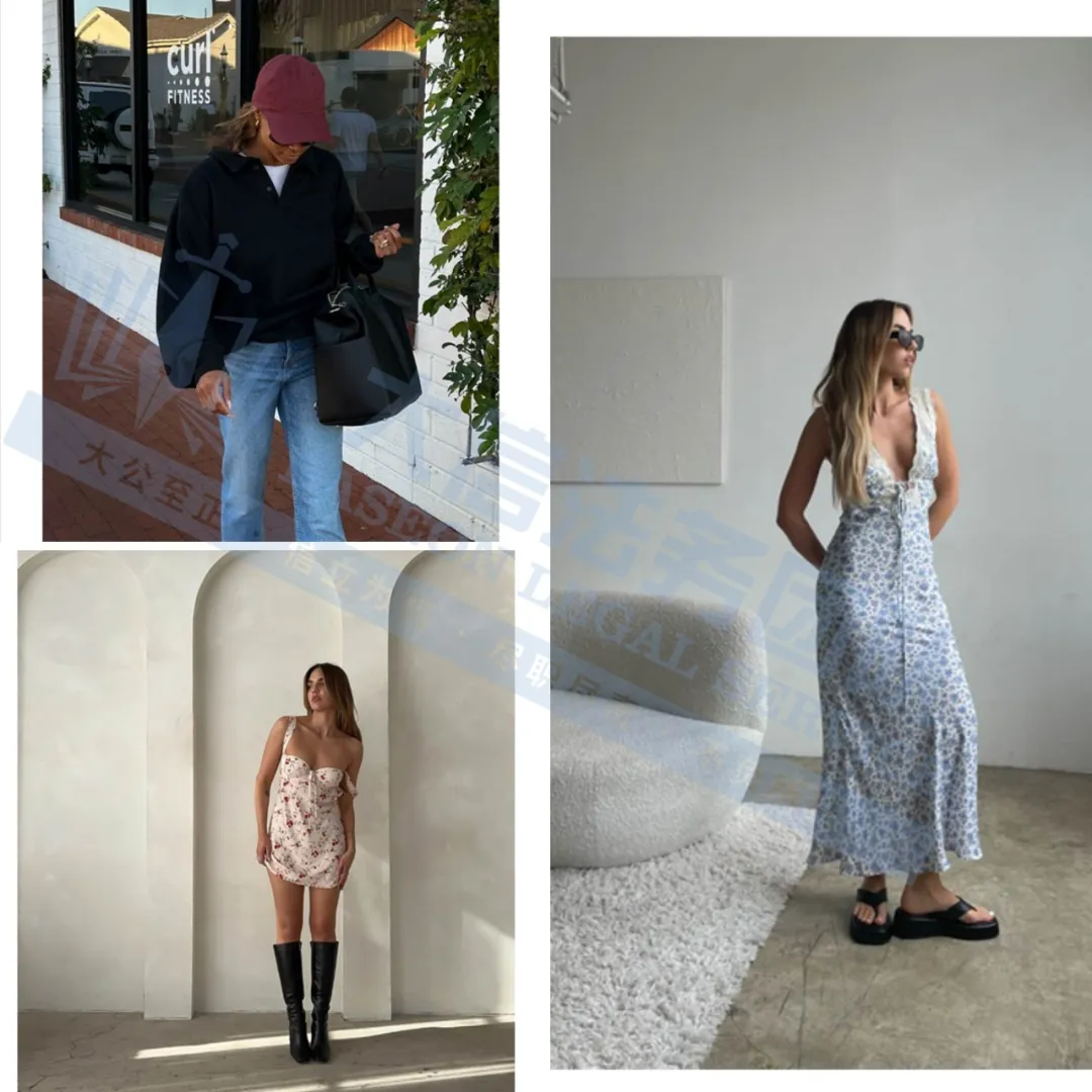 原告是一个源自纽约的女装品牌,由女性创立并完全由女性团队运营。该品牌以打造基础百搭款为核心,融合时尚潮流与经典设计,通过历史灵感诠释未来穿着可能,涵盖基础款 T 恤、直筒牛仔裤、针织开衫等核心单品的版型设计与图案元素,如高腰直筒裤的腰头剪裁、圆领 T 恤的领口弧度等。