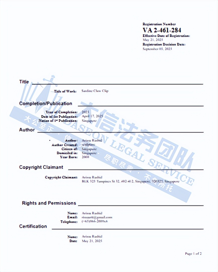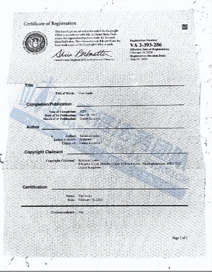 此案为版权维权,涉及1张版权图,版权号:VA 2-461-284,于2025年4月17日发布,并于2025年5月21日下证,跨境卖家一定要注意检索下架,未经授权不得擅自使用,以下是涉案版权信息,可供卖家参考,避免TRO侵权损失!
