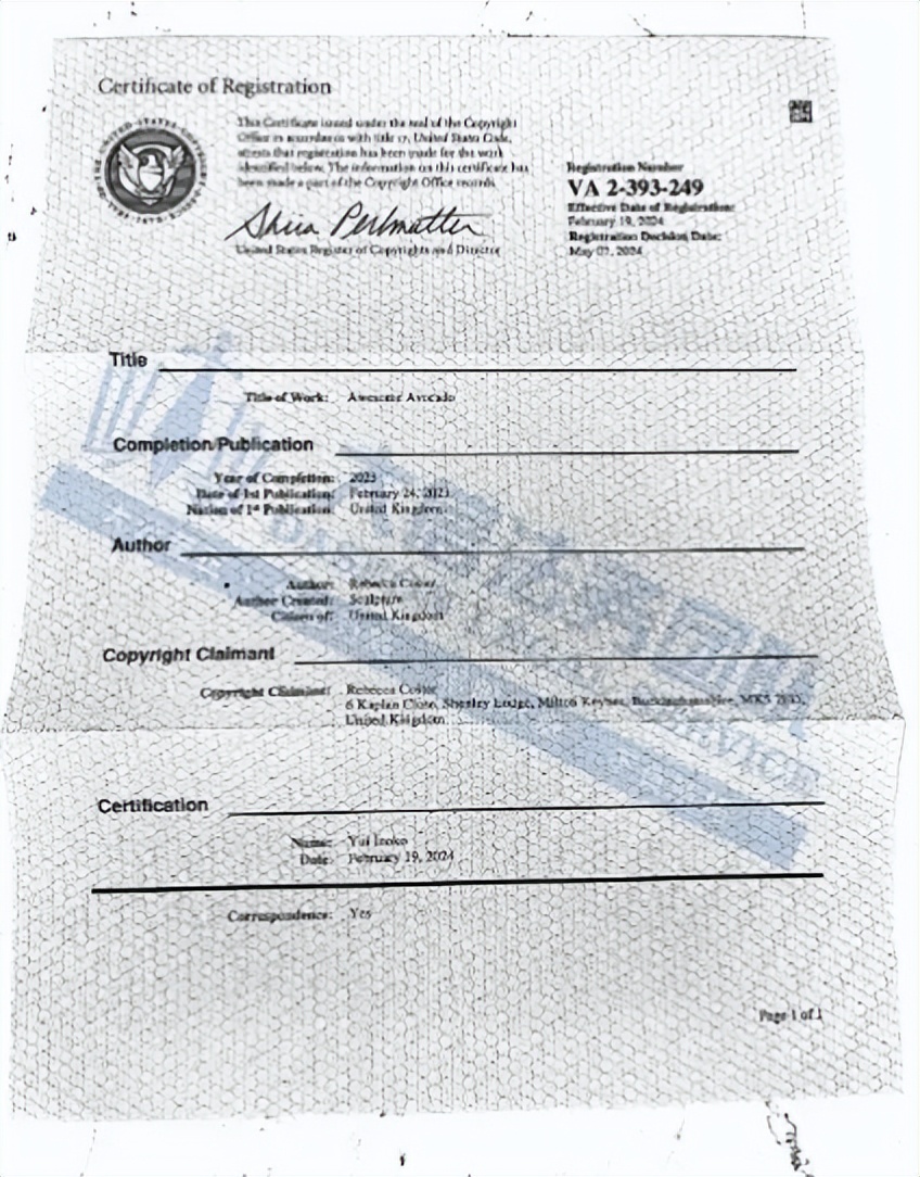 此案为版权维权,涉及2张版权图,版权号:VA 2-393-249和VA 2-393-256的牛油果、菠萝针织玩偶,针织玩偶已经多次发起维权,跨境卖家一定要注意检索下架,未经授权不得擅自使用,以下是涉案版权信息,可供卖家参考,避免TRO侵权损失!