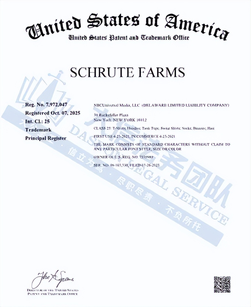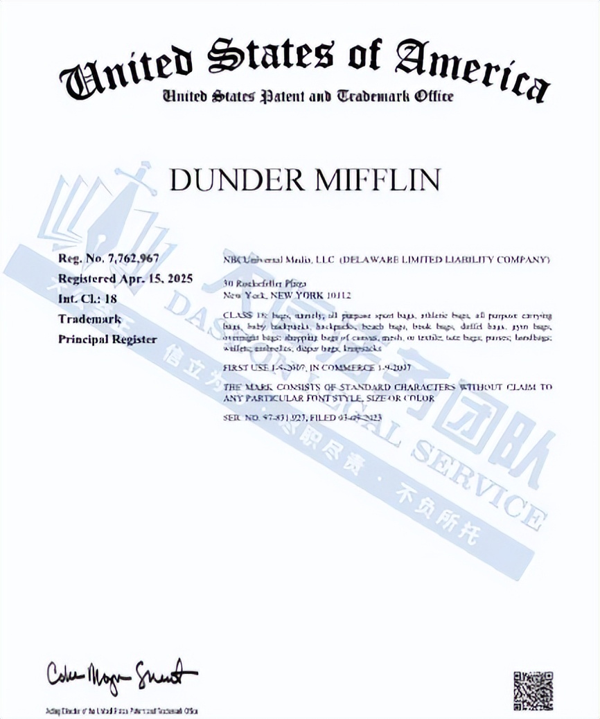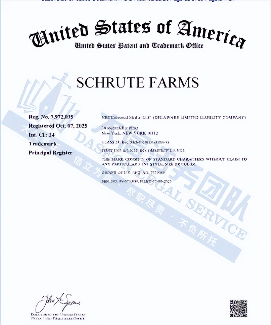 此案为商标维权,20天发案29次,涉及“Dunder Mifflin、Dundie、Schrute farms”3个图文商标,除此之外,官网的其他作品未经授权均不得擅自使用,以下是涉及商标具体信息,侵权风险极高,跨境卖家尽快检索下架,避免造成更大的TRO侵权损失!