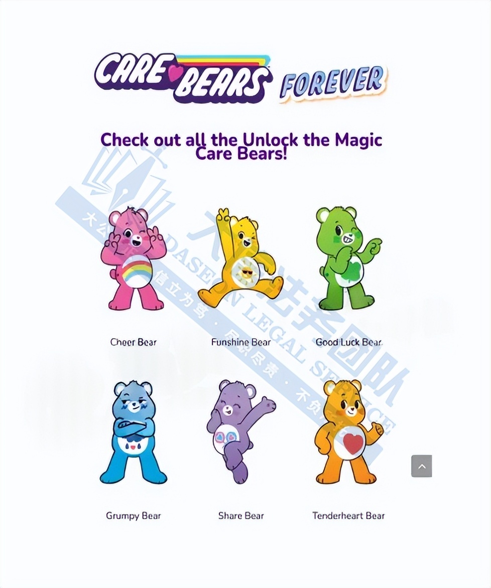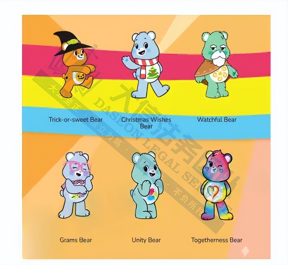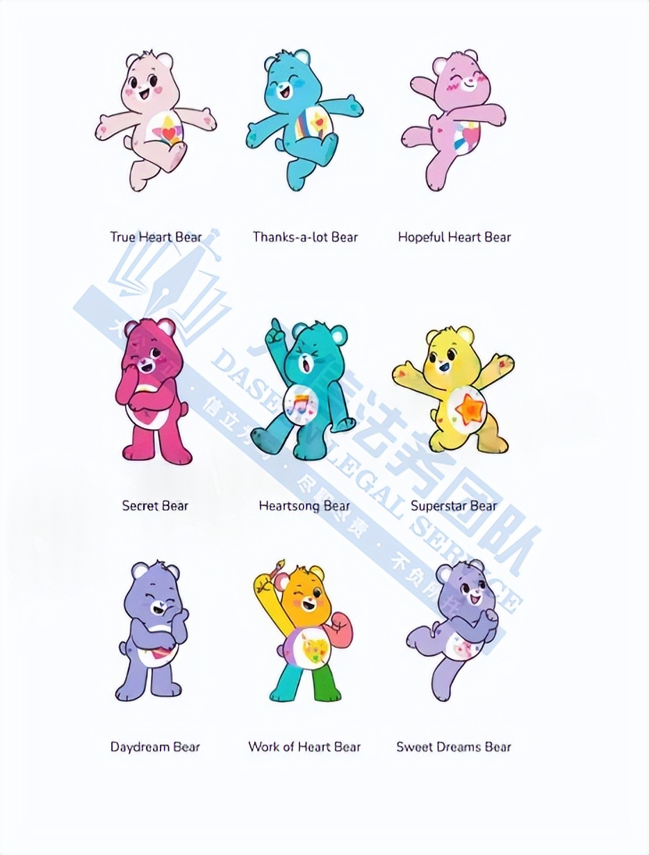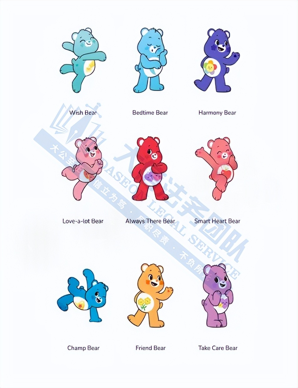 原告是一家来自美国的品牌创意娱乐公司,有Care Bears、Madballs、Holly Hobbie等多个知名品牌。Care Bears爱心熊是该公司最具代表性的品牌之一,以其关爱和友善的形象而闻名。每个Care Bear都有自己独特的颜色和符号,代表着特定的情感或特征。通过玩具、电视节目和电影,Care Bears向世界传达积极的价值观,并鼓励人们关心他人和表达情感。