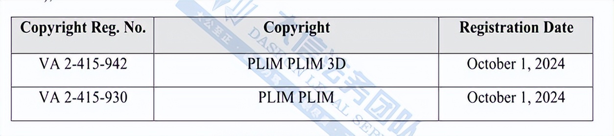 此案为版权维权,涉及2张版权维权,版权号:VA 2-415-942、VA 2-415-930,均于2024乃内10月1号下证,以下是部分版权信息,跨境卖家尽快检索自家产品,对比下架!避免TRO侵权造成更大的侵权损失!