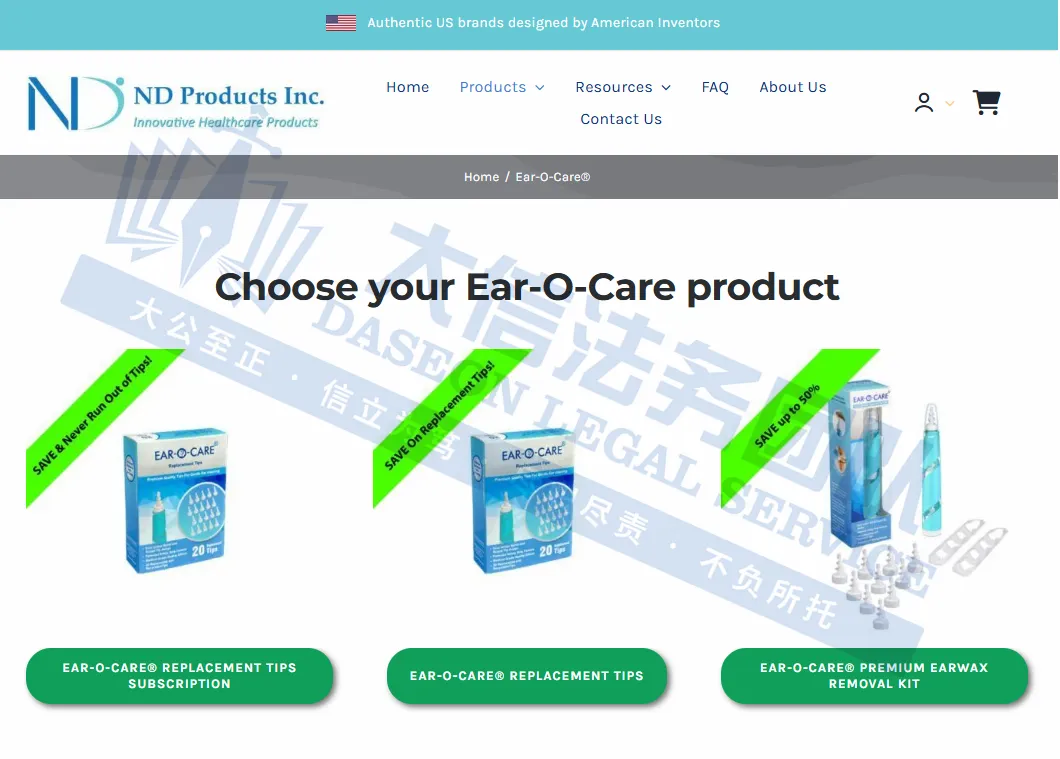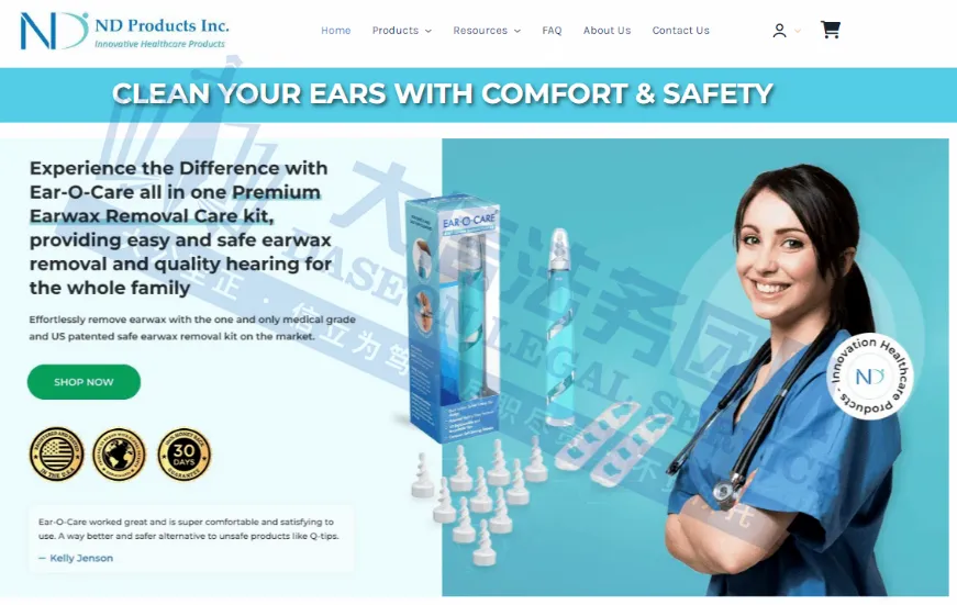 原告是专注于个人健康护理的美国品牌,品牌创始人Nami Khadem 洞察到棉签等传统工具可能带来的风险,为此投入了超过20年时间进行研发,旨在创造出更安全、有效的耳部护理产品。ND PRODUCTS 旗下主要有两款耳部清洁工具:Smart Swab®(智能螺旋耳挖勺) 和作为升级款的 Ear-O-Care®。它们共同的设计理念是“安全地清除,而不是推出耳垢”。