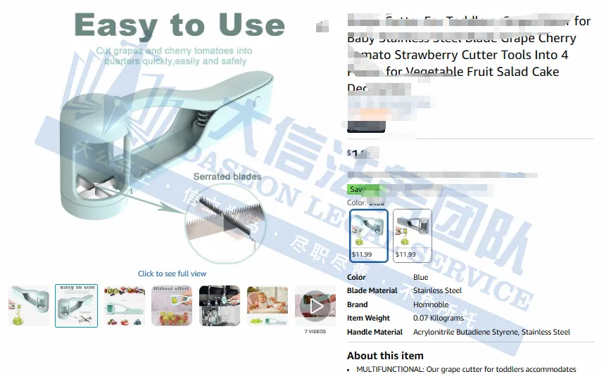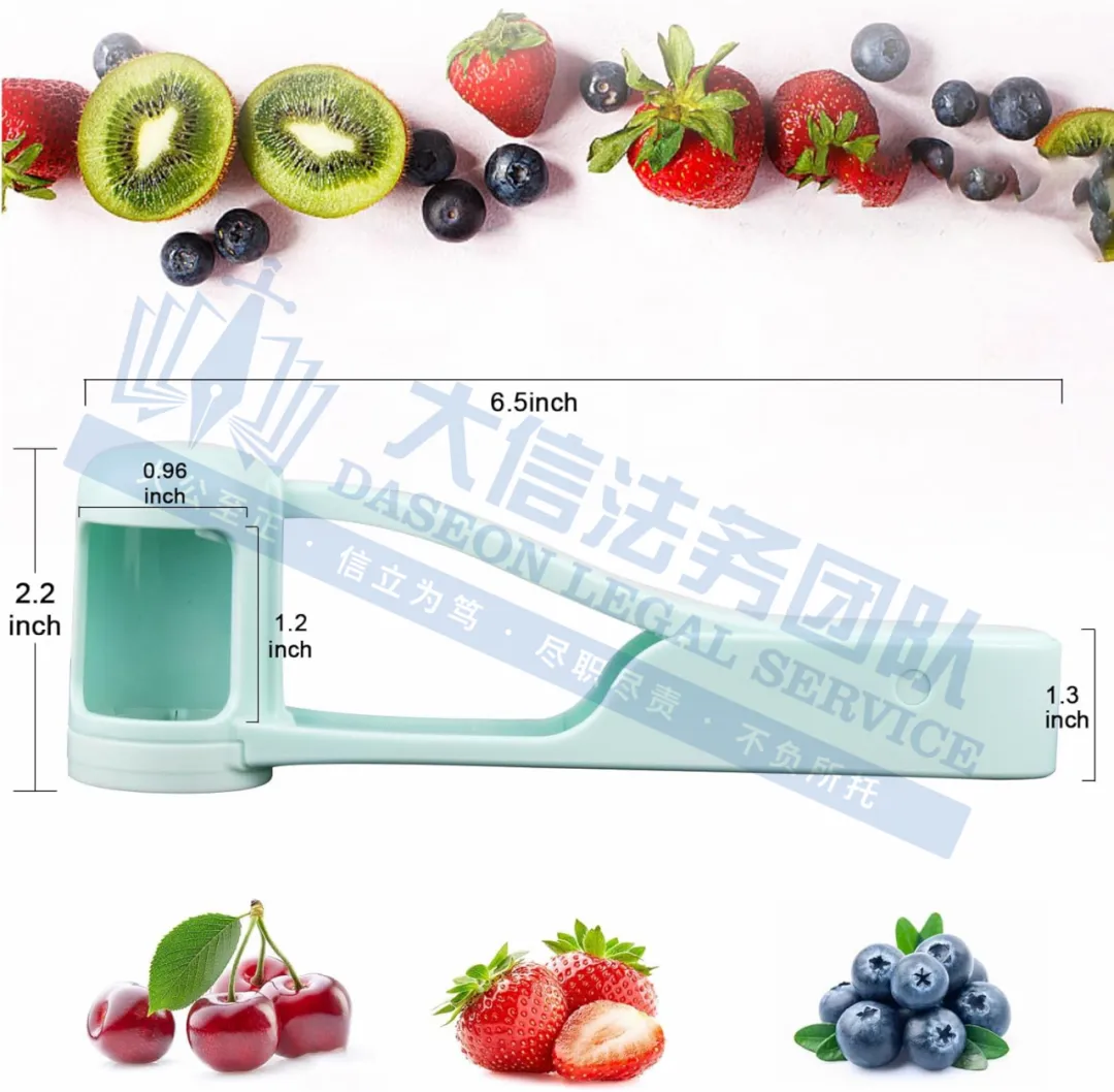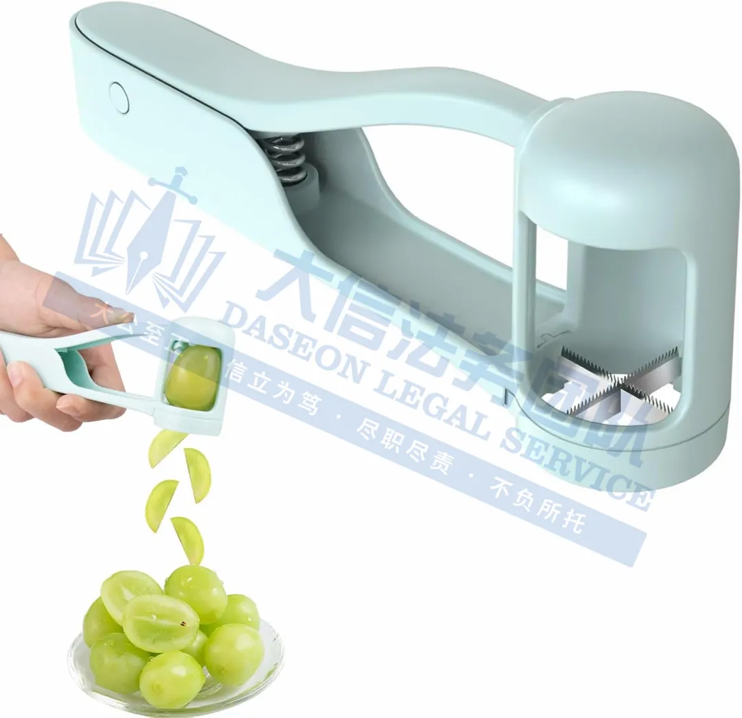 原告是家位于中国深圳的企业,主要从事家居及厨房用品的设计与生产,旗下有款葡萄切割器,它能将葡萄、去核樱桃、樱桃西红柿(圣女果)、草莓、蓝莓、去核橄榄等无籽水果,精准地一次性切成四小块。这个设计非常适合给婴幼儿制作水果餐,或者用于制作水果沙拉、蛋糕裱花等需要小份水果的场景。