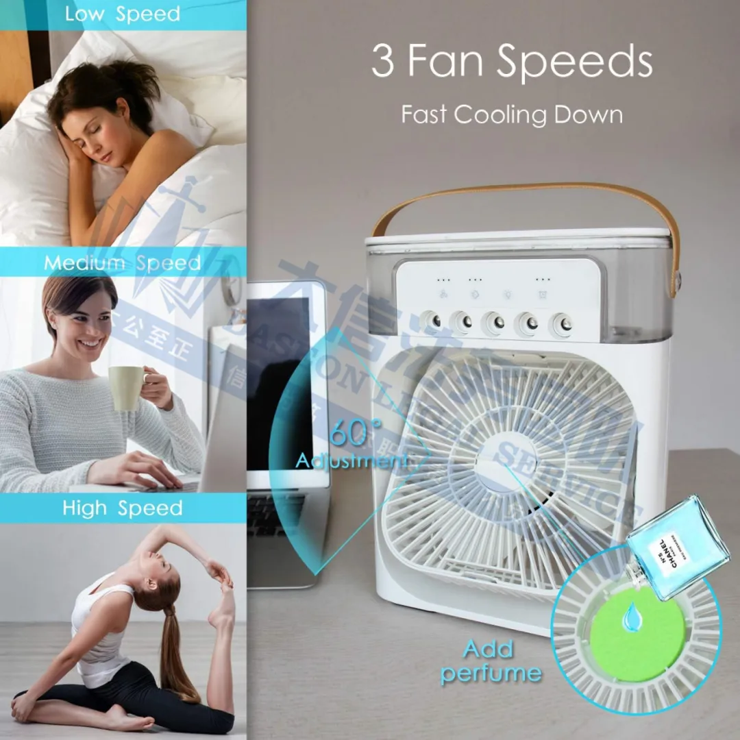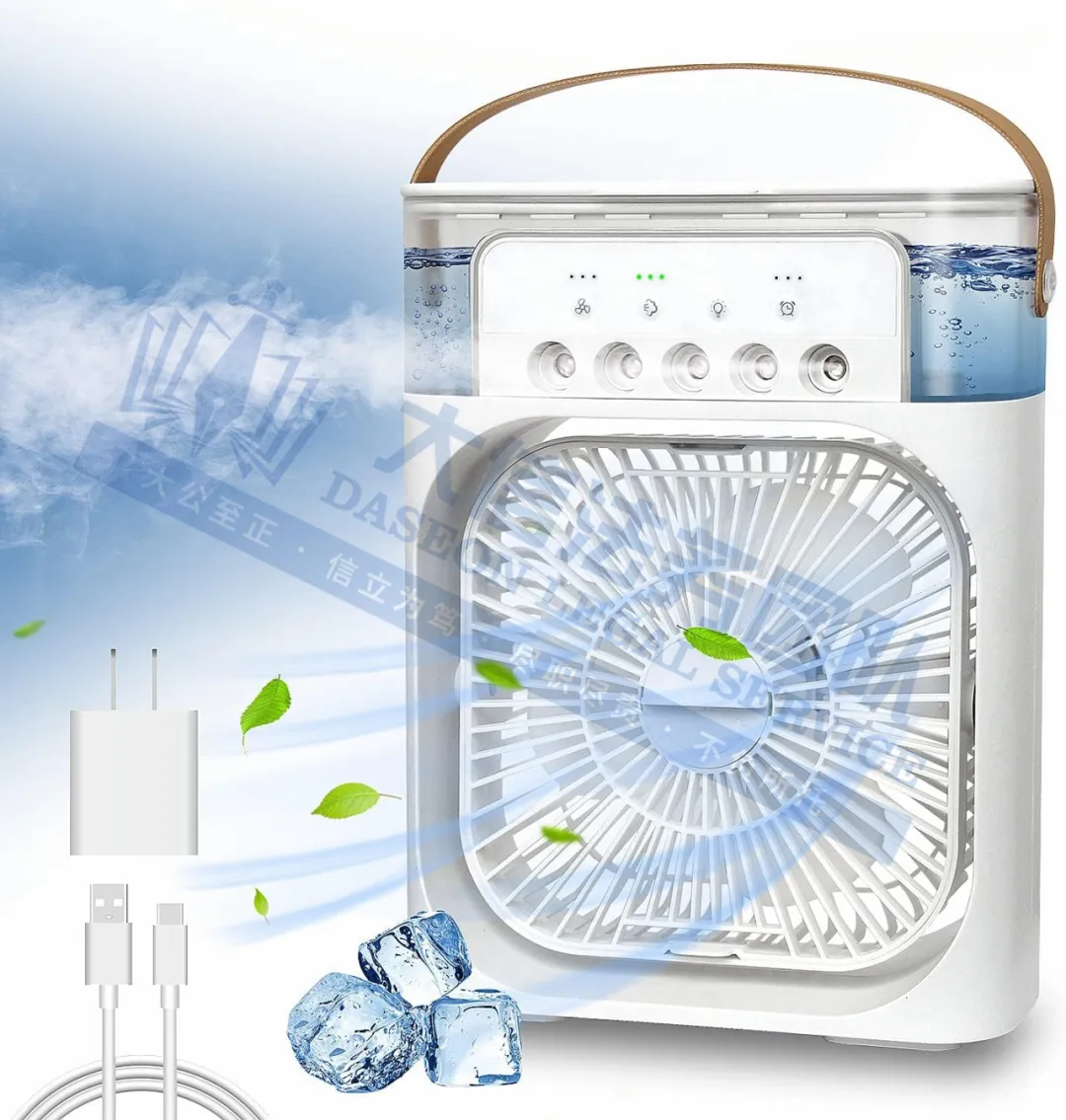 原告是来自河南的跨境卖家,旗下有一款便携式冷风机的专利,它不仅仅是一个风扇,还是一个蒸发式冷风机和雾化加湿器,可以一机多用,使用时,只需在水箱中加入冰块和水,就能吹出比普通风扇更清凉的风,带有便携式手柄,机身紧凑小巧,方便在居家、办公或户外野餐等场景间移动。