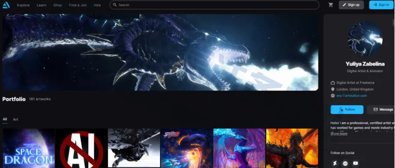 Yuliya Zabelina是国际知名数字艺术家与概念设计师,已在游戏和电影行业工作约20年。她擅长宏大科幻星际叙事、史诗龙族塑造与空灵二次元幻想美学,画面兼具视觉张力与梦幻氛围,风格鲜明、辨识度极高,在全球数字艺术领域广受认可。