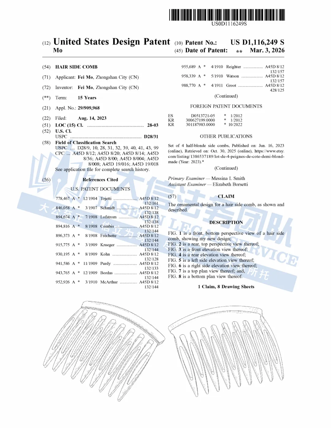 这次新下证的碎发梳的专利全是实线,保护范围虽小,但如果你要卖一模一样的,那妥妥是送人头,不敢赌的,连夜下架,别心疼库存