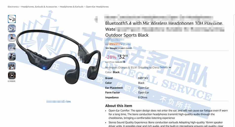 赶紧把自家产品和专利附图放一起对比—耳罩、头梁、线条……差一点都不行!你以为你卖的是高仿,人家觉得你卖的是证据