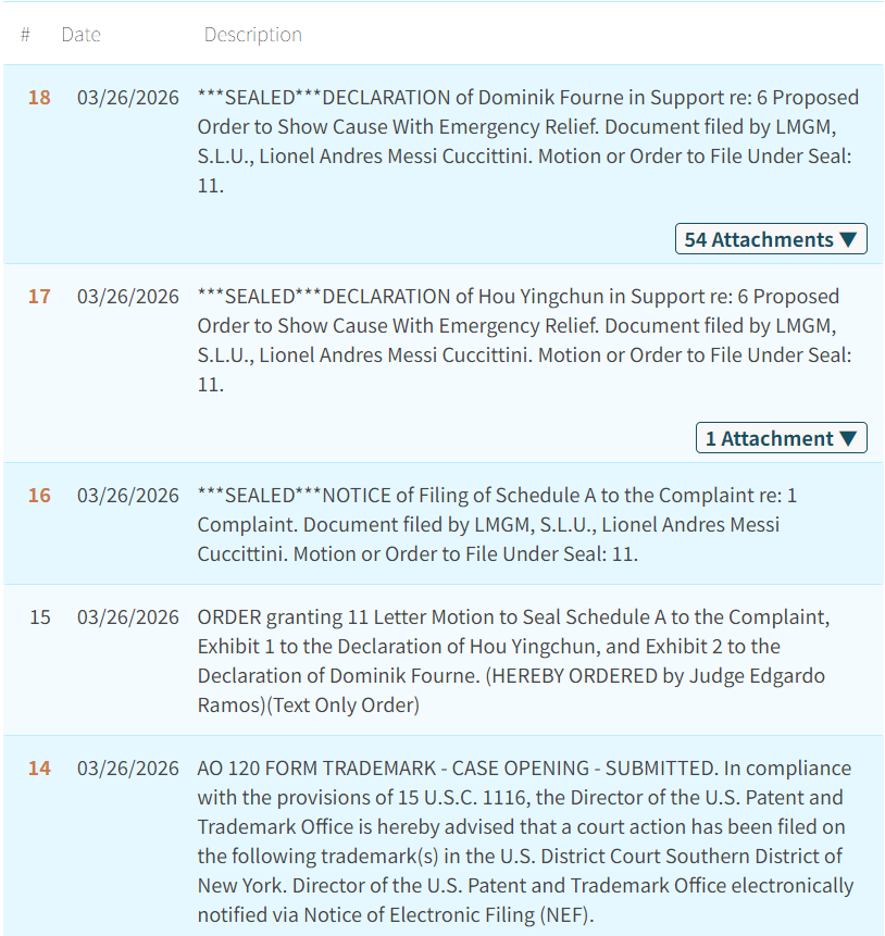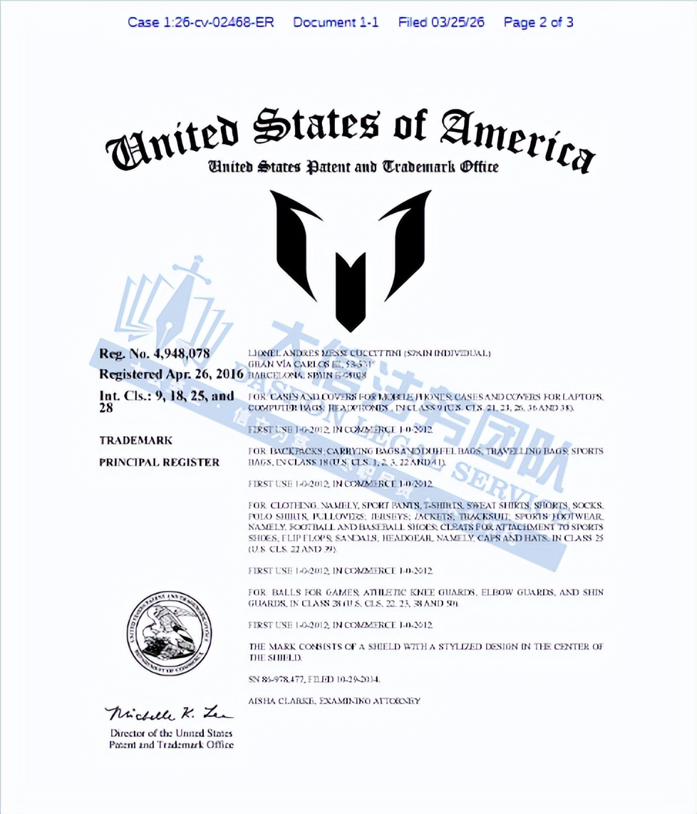此案为商标维权,涉案商标为2016年4月26日注册的Messi经典图形商标,商标:4948078。以下是涉及商标的具体信息,未经授权不得擅自使用,侵权风险极高,跨境卖家尽快检索下架,避免TRO侵权风险!