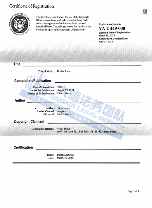 此案为版权维权,涉及一张版权图,版权号:VA 2-449-000,于2025年3月18日下证,除此之外,官网上的图片均不可擅自使用,以下是涉及版权的具体信息,未经授权不得擅自使用,侵权风险极高,跨境卖家尽快检索下架,避免TRO侵权风险!