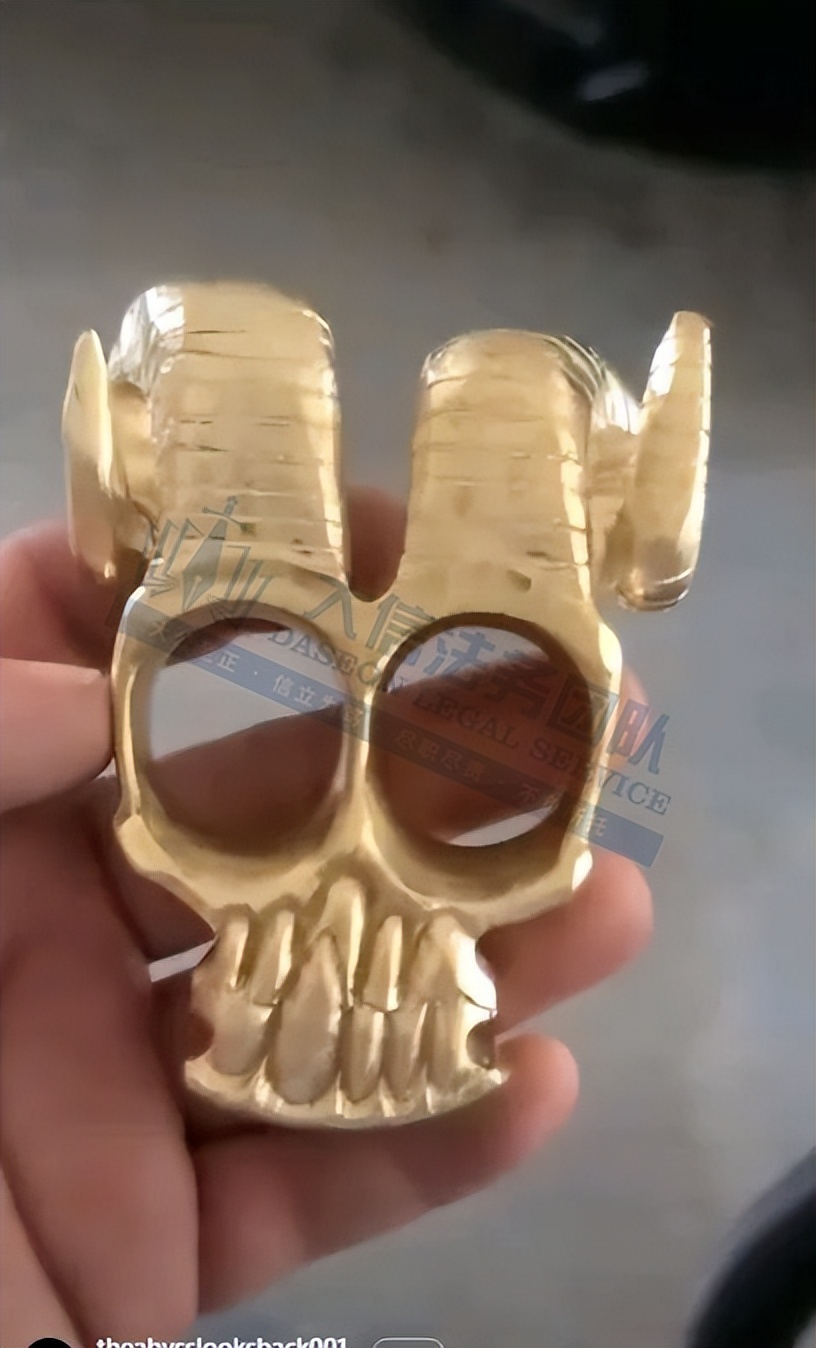 戒指的设计师Virgil Smith是一位来自美国纽约的艺术家。他擅长使用厚重的黄铜材质进行金属工艺雕塑创作,其作品通常带有强烈的个人风格和手工质感,指由黄铜制成,经过精心雕琢和手工抛光。这种处理方式使其带有浓郁的复古气息和独特的金属质感,设计上融合了复古朋克风与骷髅元素。其名称“Double Lump”也暗示了戒指在造型上可能具有标志性的凸起或骷髅结构。