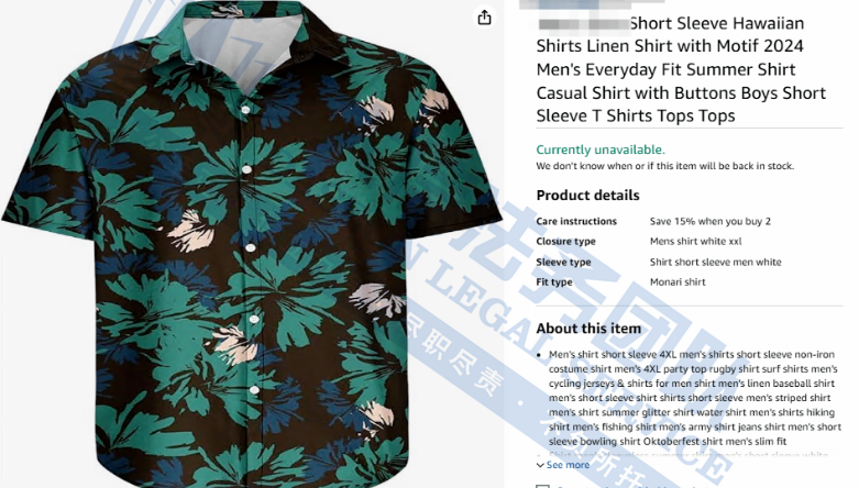 此案为版权维权,目前有67家店铺被波及,涉及《Graphic Tropical Hibiscus Work》(热带木槿图形),于2025年1月14日下证,版权号为 VA 2-432-750,以下是涉及版权的具体信息,未经授权不得擅自使用,侵权风险极高,跨境卖家尽快检索下架,避免TRO侵权风险!