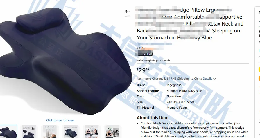 原告来自中国的国人卖家,旗下有一款明星产品,人体工学三角坡度靠枕利用三角形的稳定性,为背部、腰部或腿部提供一个稳固的支撑面。其斜坡设计能贴合人体的S型脊柱曲线或腿部曲线,帮助身体在躺卧时维持自然的生理弧度,通过增大受力面积,将身体局部的压力分散开来,避免骨骼突出部位长时间受压,对需要长期卧床的人有预防压疮的作用,也可以靠在床上看书、追剧、玩手机,或者坐在沙发上休息时使用。