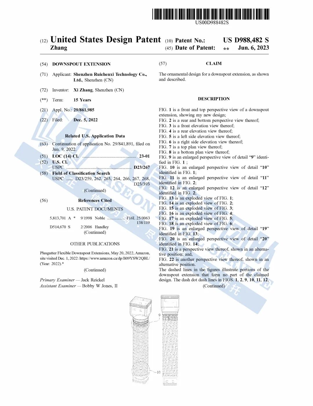 此案为专利维权,涉及8张设计专利作品,专利号:US D1072210S、US D988483S及USD988482 S等。以下是涉及专利的具体信息,未经授权不得擅自使用,侵权风险极高,跨境卖家尽快检索下架,避免TRO侵权风险!