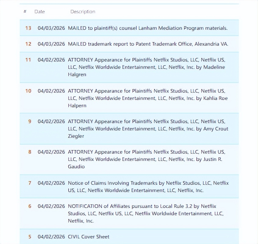 原告:Netflix, Inc., Netflix Studios, LLC, Netflix US, LLC, and Netflix Worldwide Entertainment, LLC