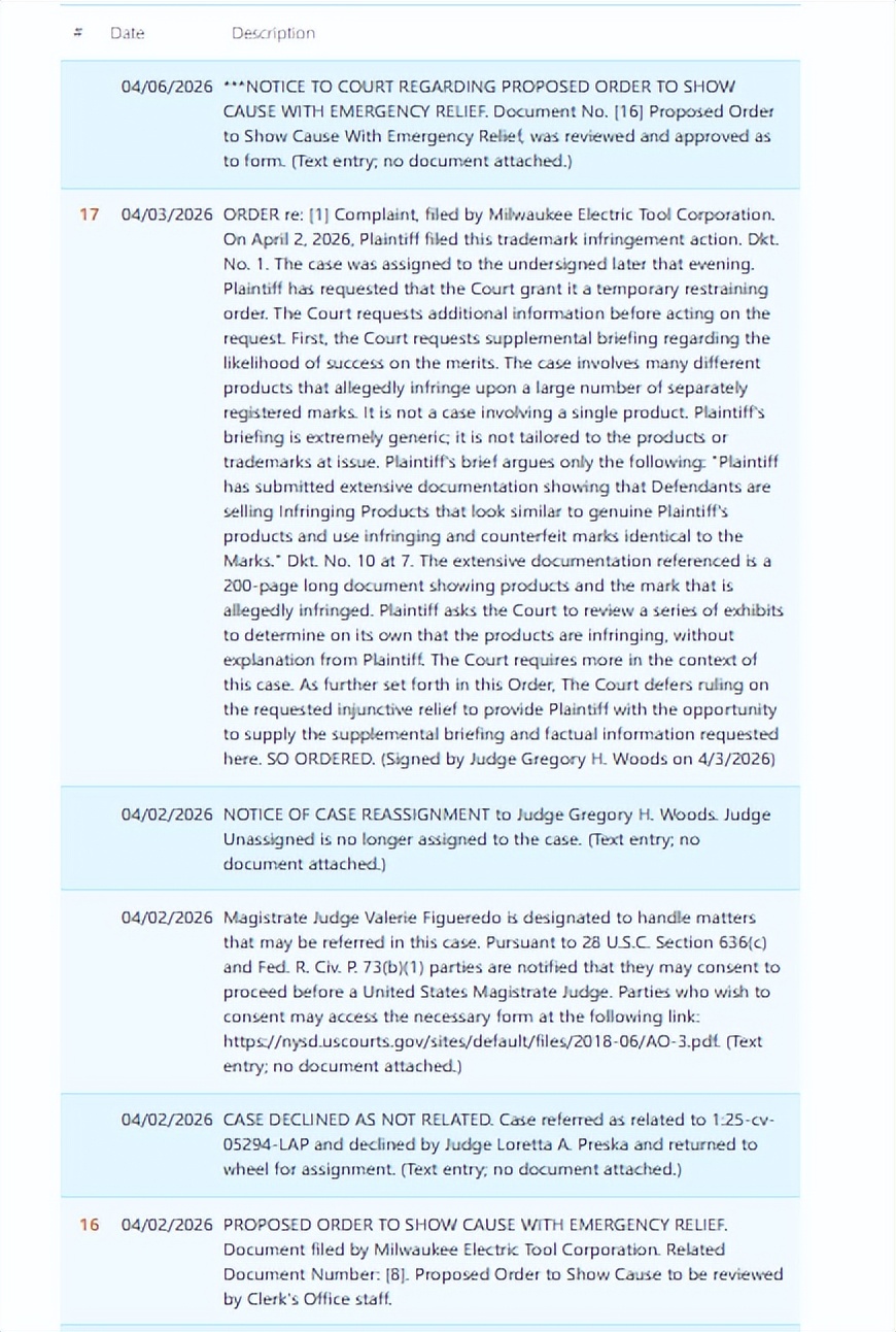 原告是电动工具企业,成立于1924年,其旗下Milwaukee Tool 品牌在电钻、冲击扳手、专业手工具等领域享誉欧美,最初的概念是利用这种无线连接来创建一个应用程序驱动的工具,控制无绳钻孔的最大速度,产品以 “耐用强、性能稳” 著称,拥有极高市场辨识度与用户忠诚度。