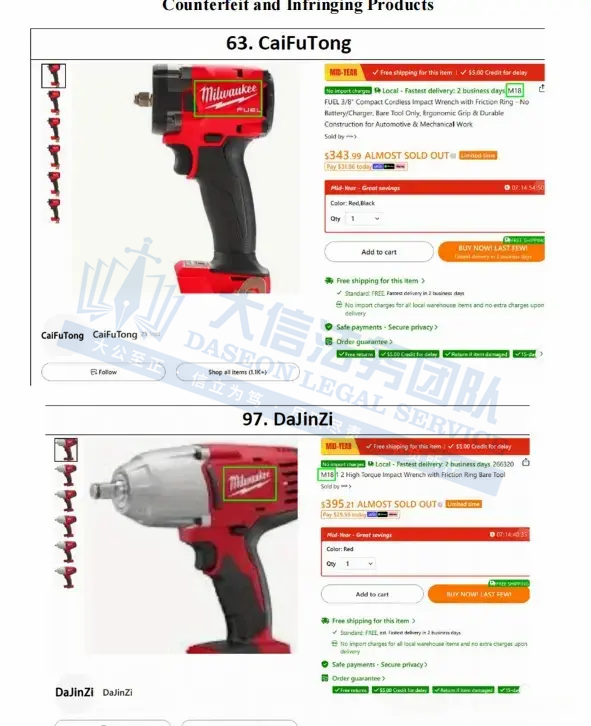此案为商标维权,上次有1783家店铺被冻,涉及数十个图文商标,商标词:M18、M12、REDLITHIUM等商标。以下是涉及商标的具体信息,未经授权不得擅自使用,侵权风险极高!跨境卖家尽快检索下架,否则会有TRO侵权风险!