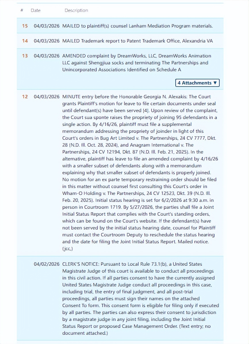案件号:26-cv-03664、26-cv-03688、26-cv-03690、26-cv-03711、26-cv-03730